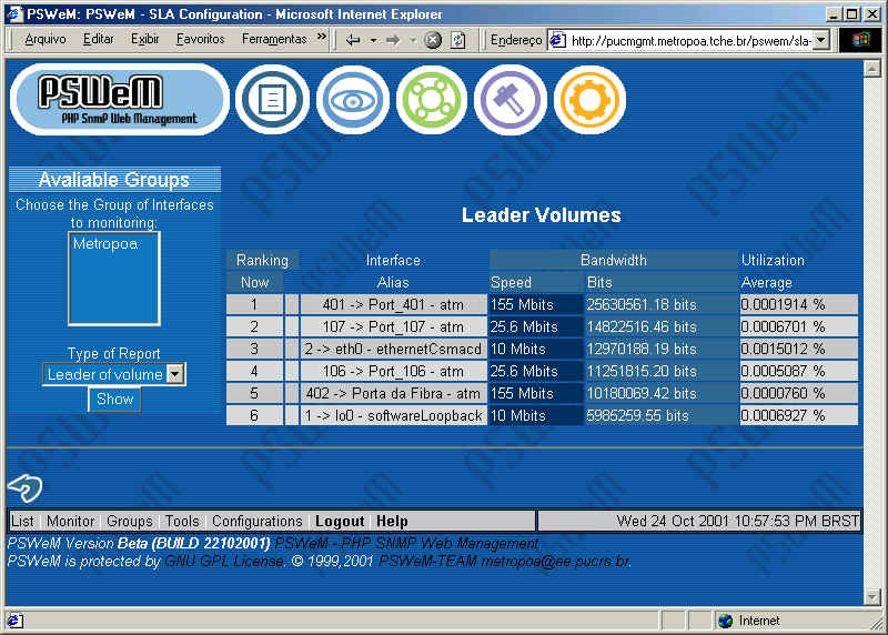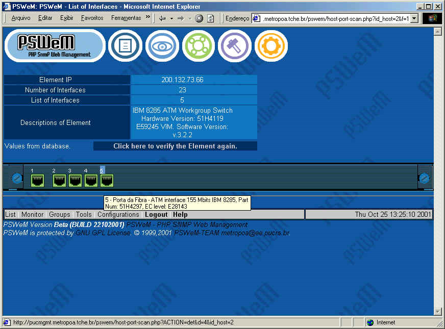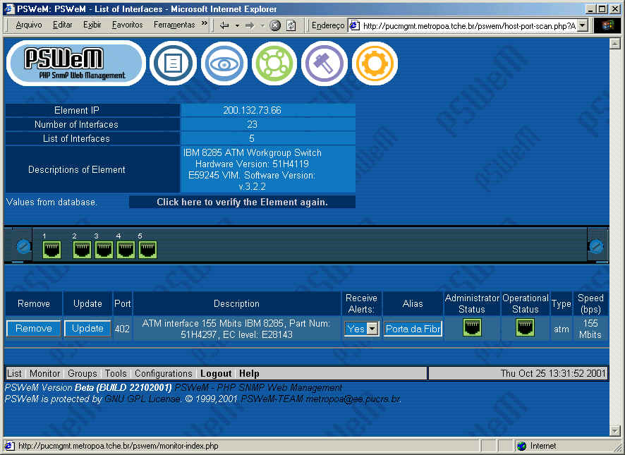 3.1: Visualização das interfaces de um equipamento gerenciado no PSWeM.