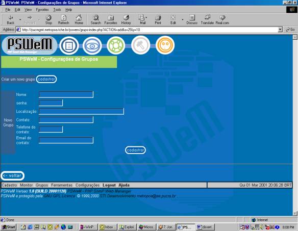 existentes no banco de dados do PSWeM é o de GRUPOS. A seguir temos a tela onde é possível