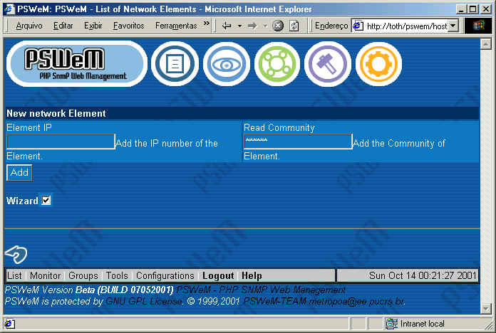 - PHP SNMP Web ManagementO PSWeM é uma ferramenta para gerenciamento de redes. Funciona como uma aplicação GERENTE, requisitando informações da MIB dos AGENTES dos equipamentos gerenciados. Estas requisições e respostas entre o GERENTE e os AGENTES são realizadas através do protocolo SNMP (Simple Network Management Protocol):