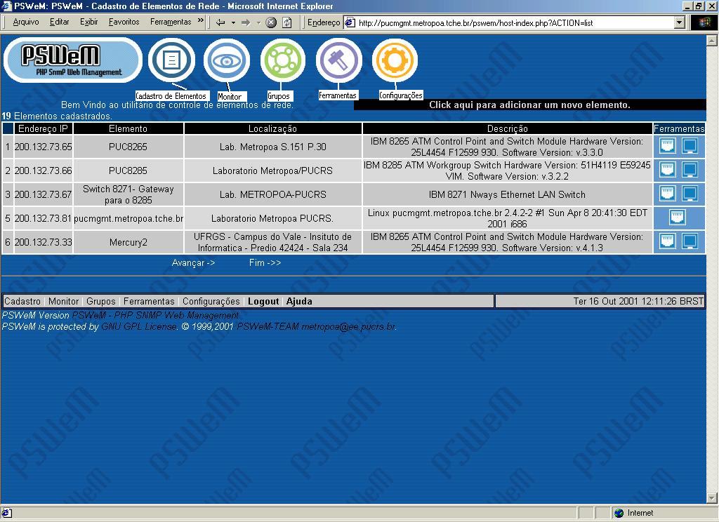 a lista de todos os equipamentos cadastrados na monitoração. Clicando sobre